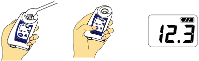 Поместите 2-3 капли образца на призму рефрактометра с помощью пипетки. Нажмите кнопку START, и в течение 3 секунд на дисплее отобразится результат измерений по шкале %Brix.
