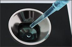 Заполните измерительную ячейку образцом до линии (примерно 3 мл)