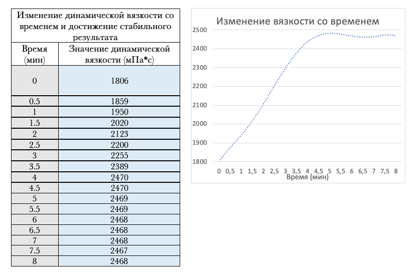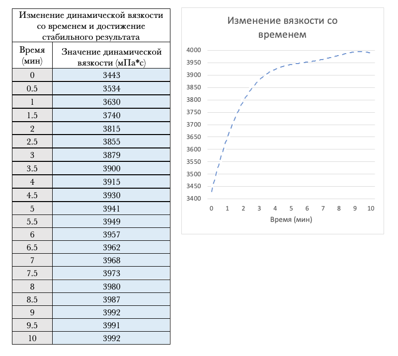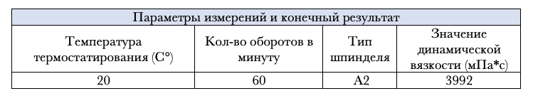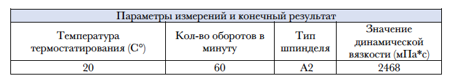 Образец обладает хорошей однородностью и стабильный результат достигается за короткий промежуток времени. За истинное значение вязкости принимается то значение, отклонения от которого не превышают заданной погрешности.