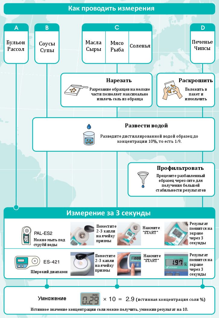 При большом количестве ресторанов или кафе появляется необходимость поддерживать одинаковый вкус блюд в разных местах: это могут быть как супы, соусы, так и другие солесодержащие блюда. Солемеры ATAGO помогут измерять солёность как на центральной кухне, так и в каждом конкретном ресторане, позволяя гарантировать качество готового продукта во всей сети. А некоторые требовательные клиенты оценят указывание в меню помимо калорий также и концентрации соли.