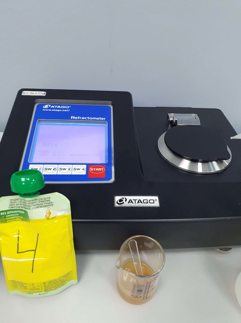 1) Образцы пюре яблока и груши являются многокомпонентными, недостаточно гомогенными, а значит оптически нестабильными для рефрактометрии.