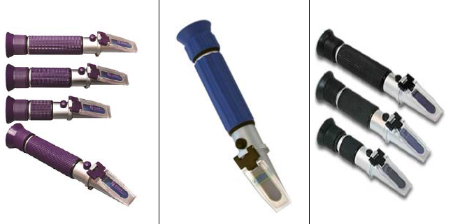 Ручной оптический рефрактометр часто воспринимается как "дешёвая игрушка", производимая в развивающихся странах – например, Китае. Призма изготавливается из дешёвого стекла, которое быстро приходит в негодность и не приспособлено для сложных условий, корпус из пластмассы, которая так же быстро изнашивается. Многие именитые европейские (немецкие и английские) производители, выпускающие неплохие стационарные рефрактометры, не уделяют должное внимание своим ручным оптическим рефрактометрам, предпочитая купить готовые решения в Китае и продавать их под своей торговой маркой. На картинке ниже представлены продукты трёх европейских производителей, но как можно заметить, это один и тот же рефрактометр, изготовленный малоизвестным китайским производителем.