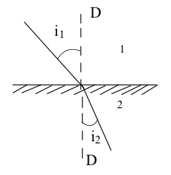 При исследовании химического состава нефти и нефтепродуктов часто определяют оптические свойства, такие как показатель преломления (ПП), удельную рефракцию, молекулярную рефракцию и удельную дисперсию. Показателем преломления называется отношение синуса угла падения светового луча к синусу угла преломления, что наблюдается при переходе луча из среды с одной оптической плотностью в другую, см. рисунок (Преломление светового луча на границе раздела двух прозрачных сред).