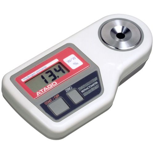 В каждой отрасли чётко определены значения концентраций перекиси водорода, а учитывая что высококонцентрированные растворы перекиси легко разлагаются, особенно под действием света или при нагревании, во многих отраслях необходим контроль за этим параметром. Рефрактометрия является одним из способов определения концентрации растворов перекиси. Например, у компании ATAGO имеются специальные ручные рефрактометры для этих целей: PR-50HO и PAL-39S. При использовании перекиси водорода в больших масштабах могут быть использованы проточные рефрактометры: например, CM-800α или PRM-100α.