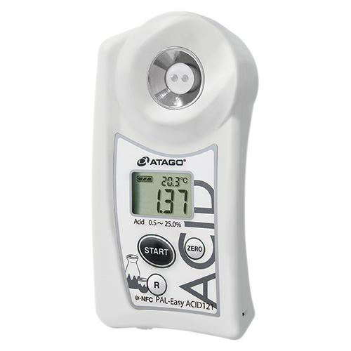 Измеритель кислотности сакэ PAL-Easy ACID 121 предназначен для измерения концентрации кислоты в рисовом сакэ. В отличие от классического метода титрования данный прибор использует метод электропроводности, что позволяет получать значение концентрации намного быстрее и проще. В комплект поставки входят: электронные весы, пластиковая мензурка, пластиковая мерная ложка и прибор.