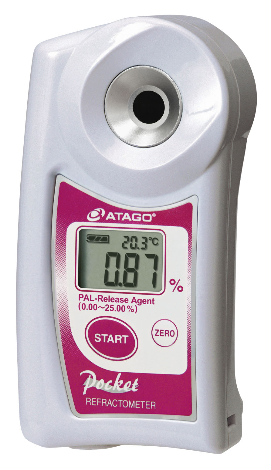 Карманный рефрактометр PAL-Release Agent предназначен для измерения концентрации смазочной жидкости, используемой для обработки поверхности форм при литье, предотвращающей сцепление формы и материалы и обеспечивающей легкое извлечение готовой детали. Прибор отображает результаты измерения по шкале Brix% в цифровом виде на дисплее.