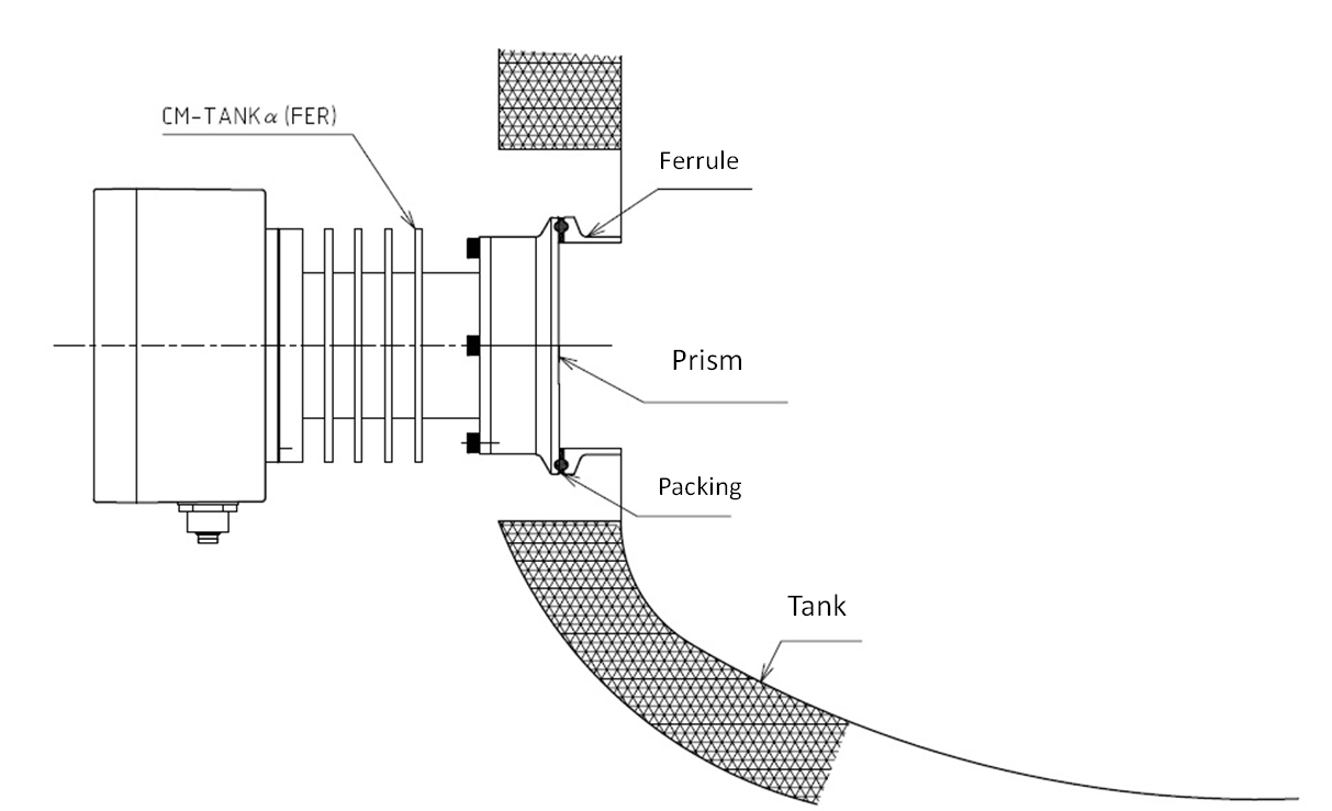 Промышленный рефрактометр CM-TANK alpha FER - версия промышленного рефрактометра СМ-800 alpha, с возможностью присоединения непосредственно к емкости (танку). Все остальные параметры соответствуют рефрактометру СМ-800 alpha. Призма рефрактометра изготовлена из высококачественного искусственного сапфира, имеющего устойчивость к механическим повреждениям. Прибор имеет превосходную точность и измерения в широком диапазоне. Измерительная часть прибора выдерживает тепловые нагрузки в диапазоне -5.0 до 160.0˚C и давление до 10 атм. Схема монтажа указана на втором изображении.