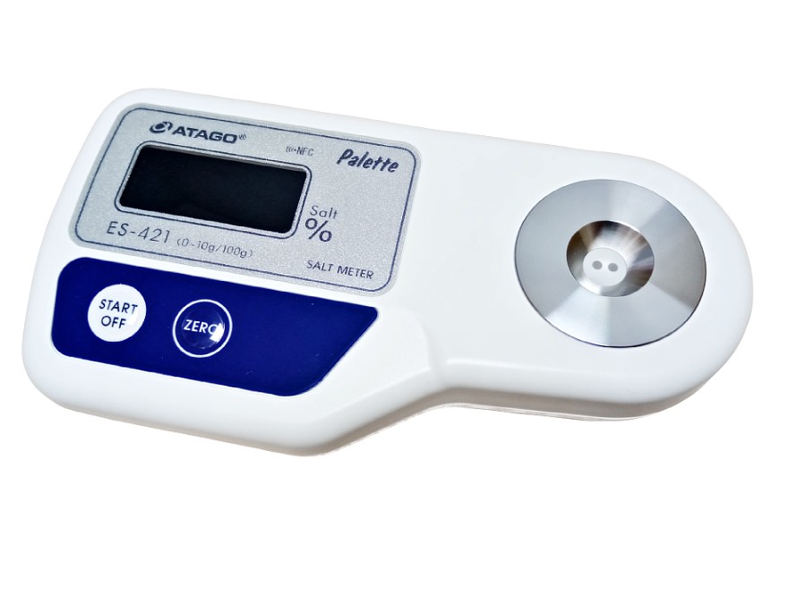 Цифровой солемер ES-421 разработан для измерения концентрации соли в различных продуктах, таких как: маринады, соусы, кетчупы, пастообразные вещества, твердые продукты (мясо, рыба, сыр) и т.д. Солемер ES-421 разработан на базе рефрактометров серии Palette, а это означает, что надежность и стабильные измерения обеспечены на долгий эксплуатационный период. На измерительной секции прибора установлены надежные титановые электроды. Сама измерительная ячейка изготвлена из стали SUS316L. Функция "оффсет" позволяет вводить свои поправочные коэффициенты. Калибруется прибор по пустой ячейке.