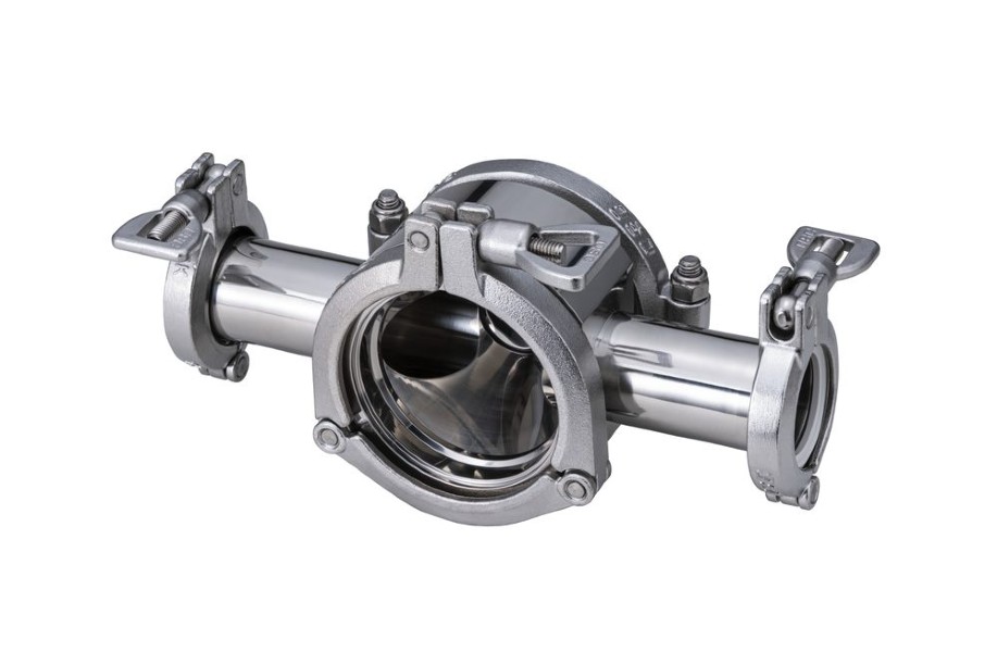 Специальный фитинг с кламп-соединениями для установки промышленного рефрактометра на трубу.