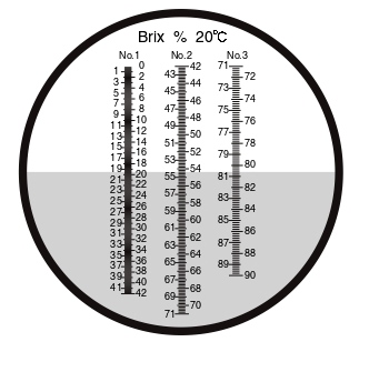 Ручной оптический рефрактометр для определения концентрации водных растворов в полном диапазоне по шкале Brix%. Трехступенчатая регулировка селектора диапазона шкалы. Каждый порядковый номер на селекторе отвечает за разные диапазоны по шкале Brix%. Перед измерением необходимо установить селектор на определенный номер согласно предпологаемому диапазону.
