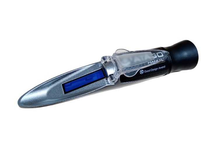 Ручной оптический рефрактометр для определения концентрации веществ в растворе по шкале растворенной в воде сахарозы % Brix. Внимание! Рефрактометр не имеет функцию автоматической температурной компенсацией (ATC). Внимание! Прибор не имеет уровень защиты от пыли и воды IP65, мыть под струей воды противопоказанно. Калибровка рефрактометра производится рефрактометрической жидкостью "Сахарозка".