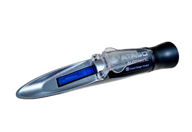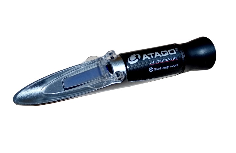 Ручной оптический рефрактометр для определения концентрации веществ в растворе по шкале растворенной в воде сахарозы % Brix. Рефрактометр снабжен функцией автоматической температурной компенсации (ATC). Внимание! Прибор не имеет уровень защиты от пыли и воды IP65. Калибровка рефрактометра производится рефрактометрической жидкостью "Сахарозка".