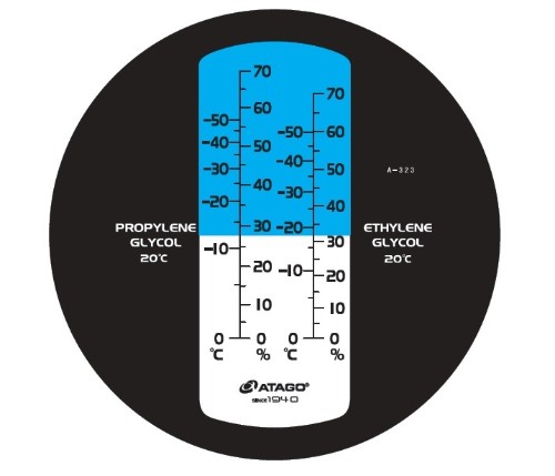 Ручной оптический рефрактометр для определения концентрации и температуры замерзания этиленгликоля и пропиленгликоля. Эти жидкости часто используются в качестве антифриза в автомобилях, а также являются важными компонентами антиобледенительных жидкостей, применяемых в авиации. Его корпус сделан из нового материала, стойкого к соленым или кислым образцам. Калибруется по дистиллированной воде.