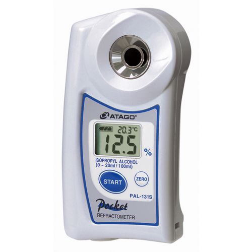 Ручной цифровой рефрактометр для определения объёмной концентрации чистого изопропилового спирта (изопропанола). Рефрактометр имеет уровень защиты от пыли и воды IP 65. Калибруется по дистиллированной воде.