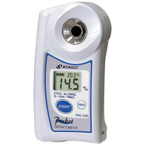 Ручной цифровой рефрактометр PAL-33S для определения объёмной концентрации чистого этилового спирта. Рефрактометр имеет уровень защиты от пыли и воды IP 65. Калибруется по воде.