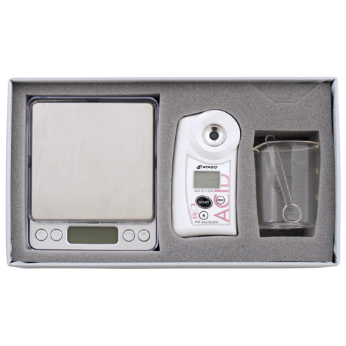 Измеритель кислотности PAL-Easy ACID 91 предназначен для измерения концентрации кислоты в молоке. В отличие от классического метода титрования данный прибор использует метод электропроводности, что позволяет получать значение концентрации намного быстрее и проще. В комплект поставки входят: электронные весы, пластиковая мензурка, пластиковая мерная ложка и прибор.