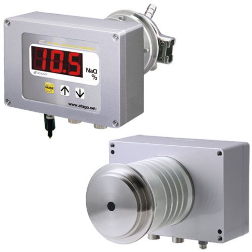 Проточный рефрактометр-солемер CM-800 alpha-SW предназначен для измерения концентрации поваренной соли NaCl в воде в непрерывном режиме. Прибор выводит на экран два значения: Концентрацию NaCl в % и фактическую температуру раствора в трубе или танке. CM-800 alpha-SW имеет компактные размеры. Конструкция этого проточного рефрактометра позволяет разместить его как непосредственно на трубе (без всяких подпорок, подставок, полок и т.д.), так и на свободностоящей металлической стойке (Опция). Питание прибора осуществляется от внешнего блока питания - AD-34 (Опция). Призма рефрактометра изготовлена из высококачественного искусственного сапфира, имеющего устойчивость к механическим повреждениям. Прибор обладает хорошей точностью измерений в диапазоне 0 - 28%. Имеет два выхода - выход RS-232C и аналоговый выход 4-20 мА. Класс защиты - IP67.