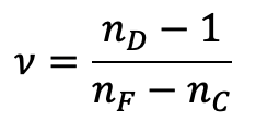 Применительно к рефрактометрии обычно измеряют показатель преломления для желтой линии натрия, так называемое «эн ди». Для некоторых применений оказывается важным также измерить и численное выражение относительной дисперсии ν вещества, которое называется числом Аббе или коэффициентом дисперсии: