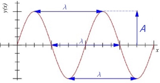 Длина волны λ – это расстояние между двумя одинаково колеблющимися точками или расстояние, на которое распространяется волна за время, равное периоду колебания. На иллюстрации 1 длина волны обозначена три раза в разных местах и всё это одна и та же величина.